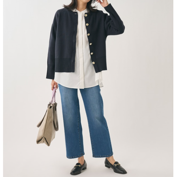 ・メタルカラーボタンでカジュアルすぎず上品な印象に