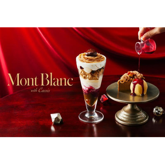 渋皮栗のモンブランあんを主役に、カシスソースとカシスの実を合わせることで、こっくりとした甘みと華やかな酸味をお楽しみいただけます。