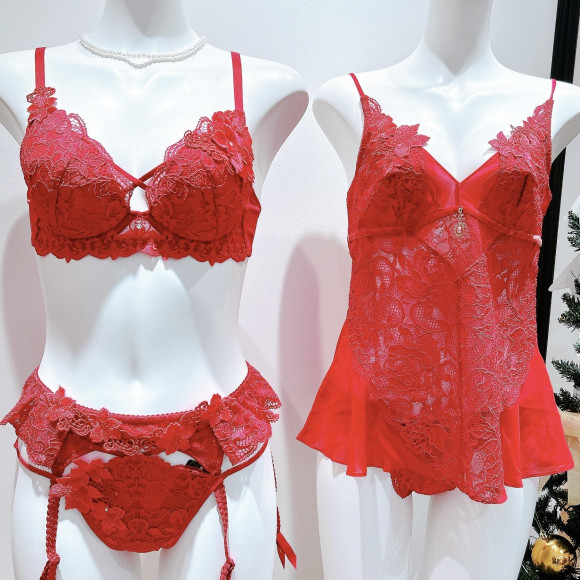 前中心はクロスのテープワークで谷間を魅力的に演出。