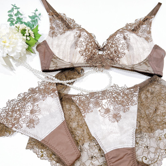 ☆カップにほどこされたレトロポップな花柄のケミカルレースが贅沢なデザイン。