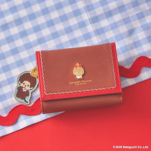 「モンチッチちゃん」をイメージしたブラウン×レッドの配色、スカラップのデザインがポイント。