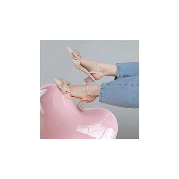 繊細なハートスパンコールを施したリボンが印象的なバックストラップパンプス。