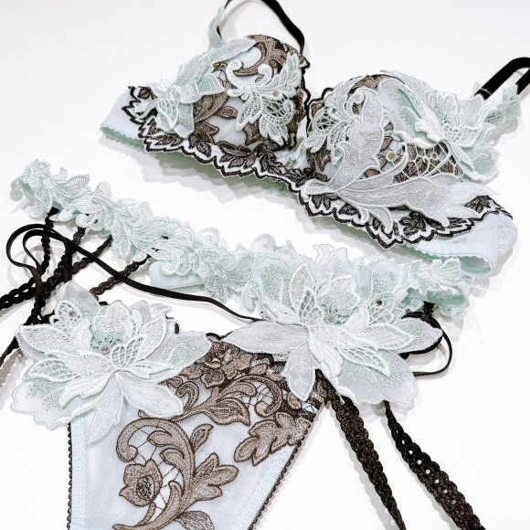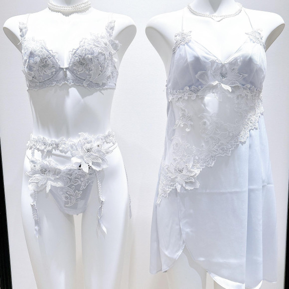 繊細なレースにパッカーアップケを贅沢に重ねることで白亜の彫刻のような、美しさを表現。