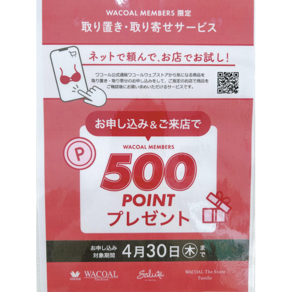 ワコールカルネからご指定のお店に在庫がある場合は「取り置き」、在庫がない場合はワコールウェブストアから「取り寄せ」することができます。