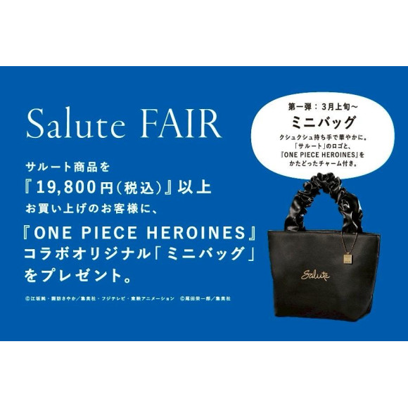 「サルート」のロゴと、『ONE PIECE HEROINES』をかたどったチャーム付き。