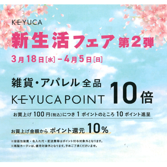 KEYUCAからお得な「新生活フェア」第2弾のご案内です。