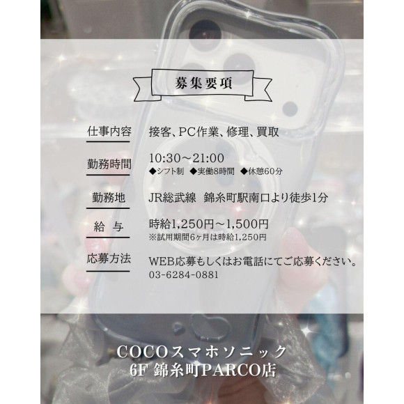 6階COCOスマホソニック錦糸町PARCO店でございます+.゜