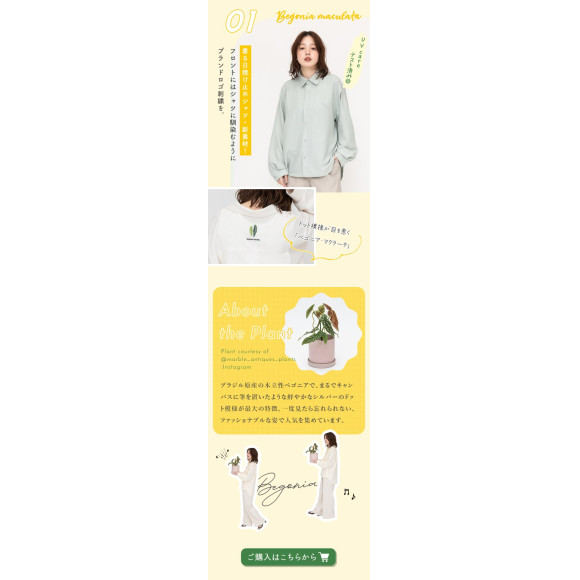 背中に繊細に施された「ベゴニア・マクラータ」のアートプリント。