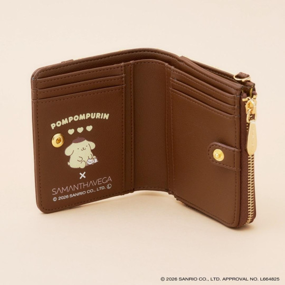 バッグのデザインとリンクした折財布。フロントとカード収納箇所にはポムポムプリンと、お友達の“マフィン”がデザインされており、中まで可愛さが詰まったアイテム。バッグのデザインとリンクした折財布。フロントとカード収納箇所にはポムポムプリンと、お友達の“マフィン”がデザインされており、中まで可愛さが詰まったアイテム。